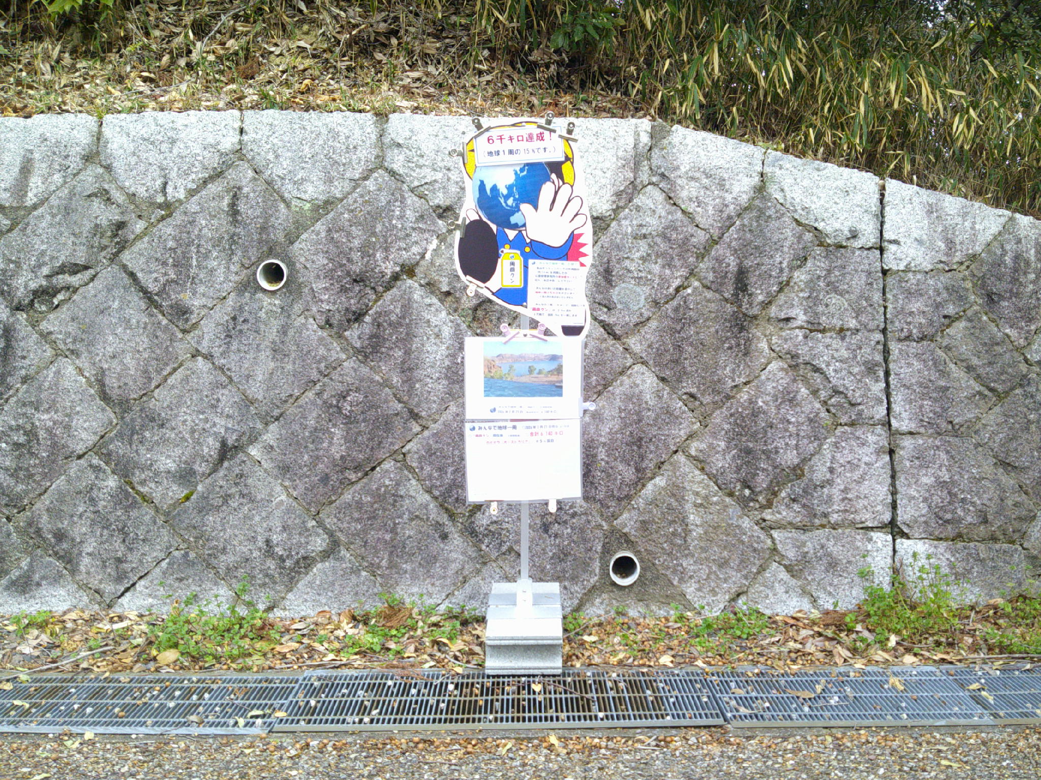 6,140キロ(2月23日)の園路の「周回クン」です。 ※毎日少しづつ進んでいます!(参加者カード1キロにつき、2.5cm)