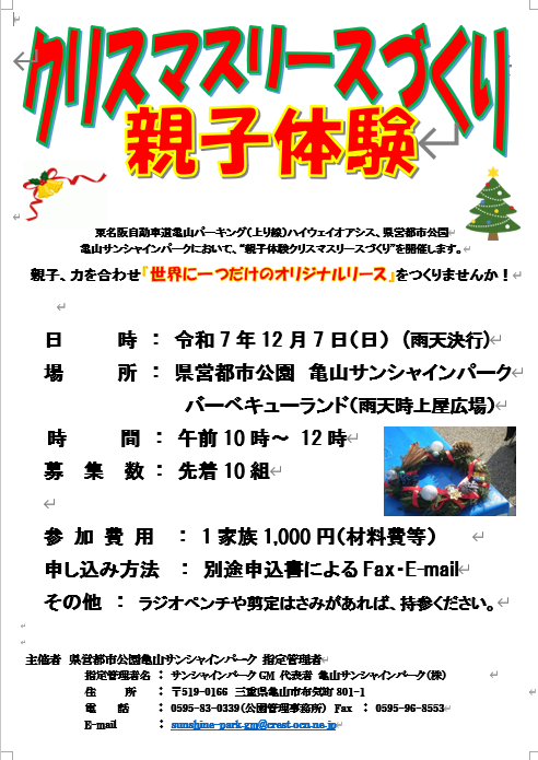 〇日時:令和7年12月7日 日曜日 (雨天決行)